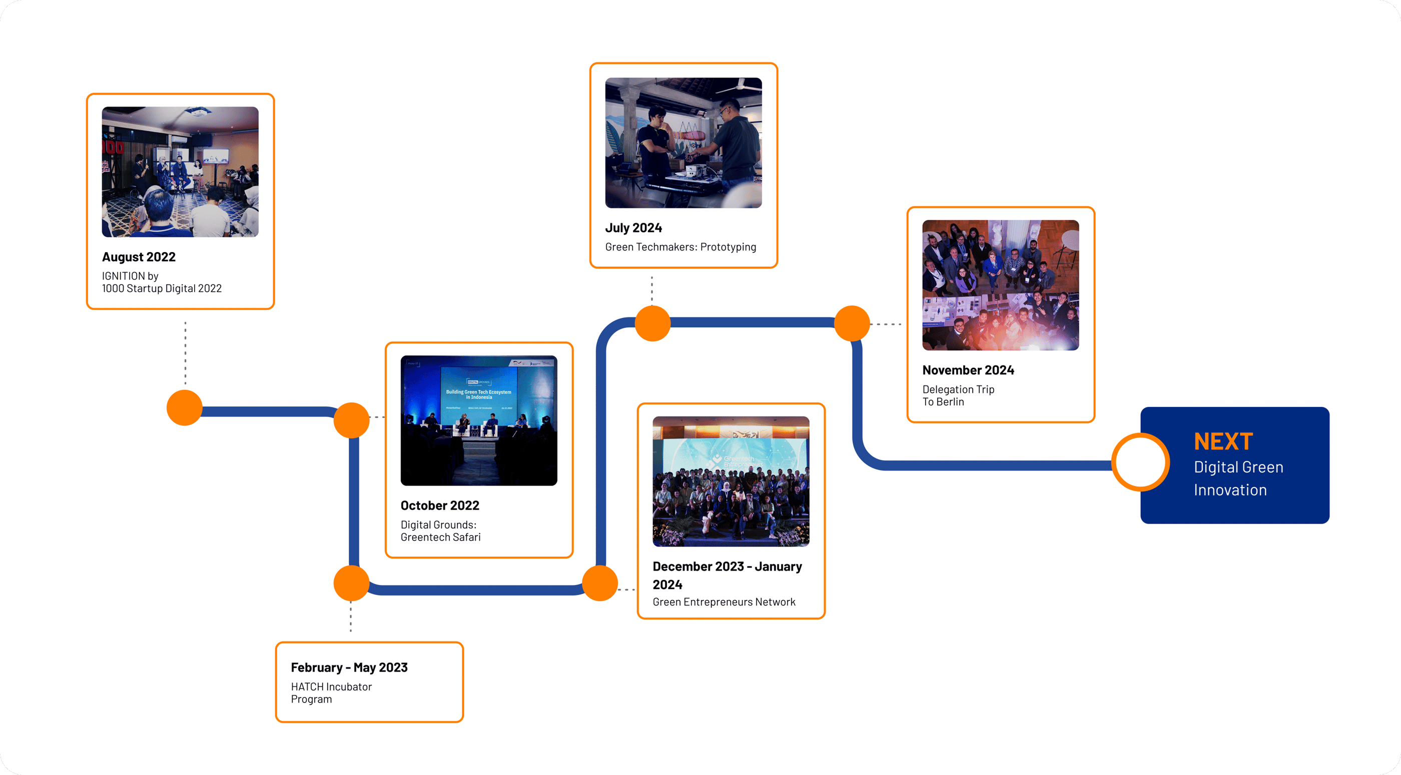 Supporting the local innovations covers activities to support startups and micro-small medium enterprises (MSMEs) to adopt digital solutions and catalyse utilization of digital solutions to tackle climate challenges. The climate challenges are currently categorized into areas of energy transition, circular economy, and natural resource management (green technology), hence supporting sustainable economic transition in Indonesia.